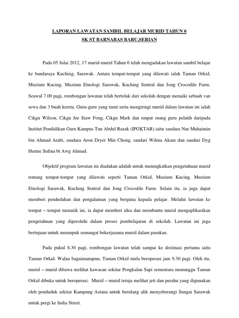 Laporan Lawatan Sambil Belajar Murid Tahun 6 Pdf