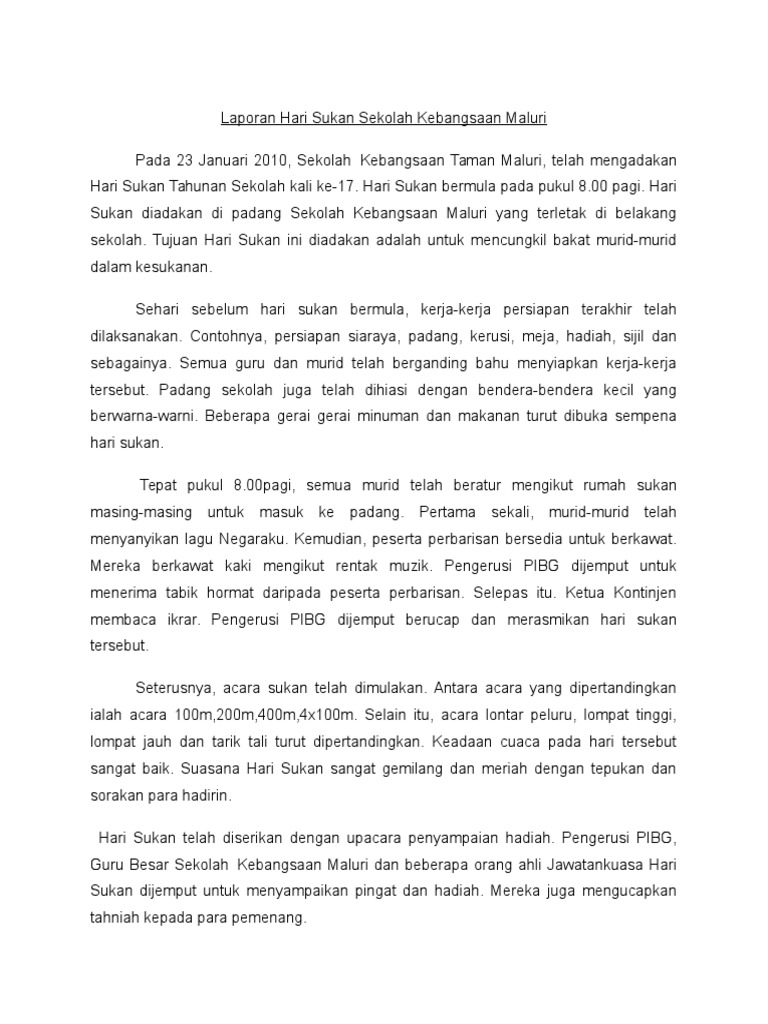 Laporan Hari Sukan Sekolah Kebangsaan Maluri Pdf